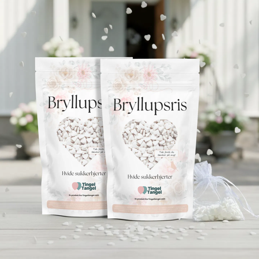Mange kirker har også forbudt almindelige ris. Hvis du har mere end 50 gæster, som vil smide ris efter brudeparret, kan du sagtens supplere med flere poser bryllupsris og organzaposer.