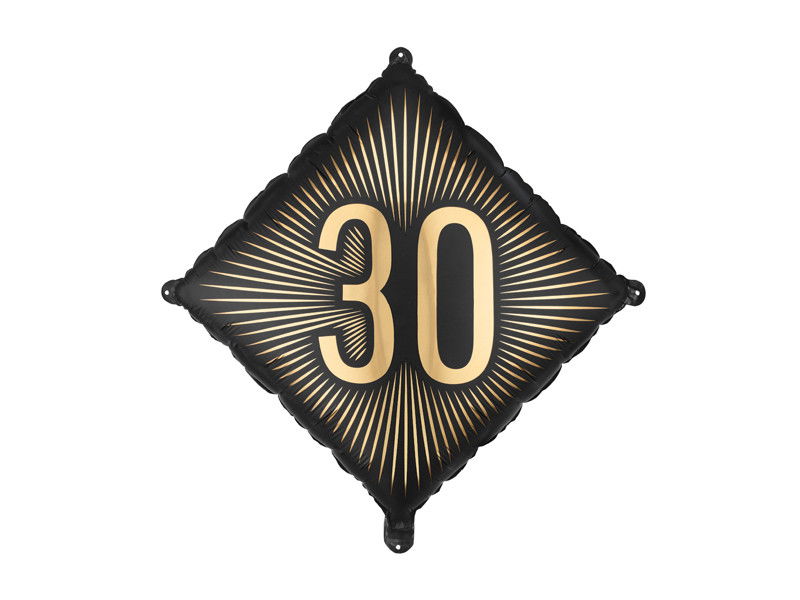 Fejr 30-års fødselsdagen med stil med denne elegante sorte folieballon med guldfarvet "30"-tryk. Perfekt som dekoration til fødselsdagsfesten – flot alene eller som del af en ballonbuket.