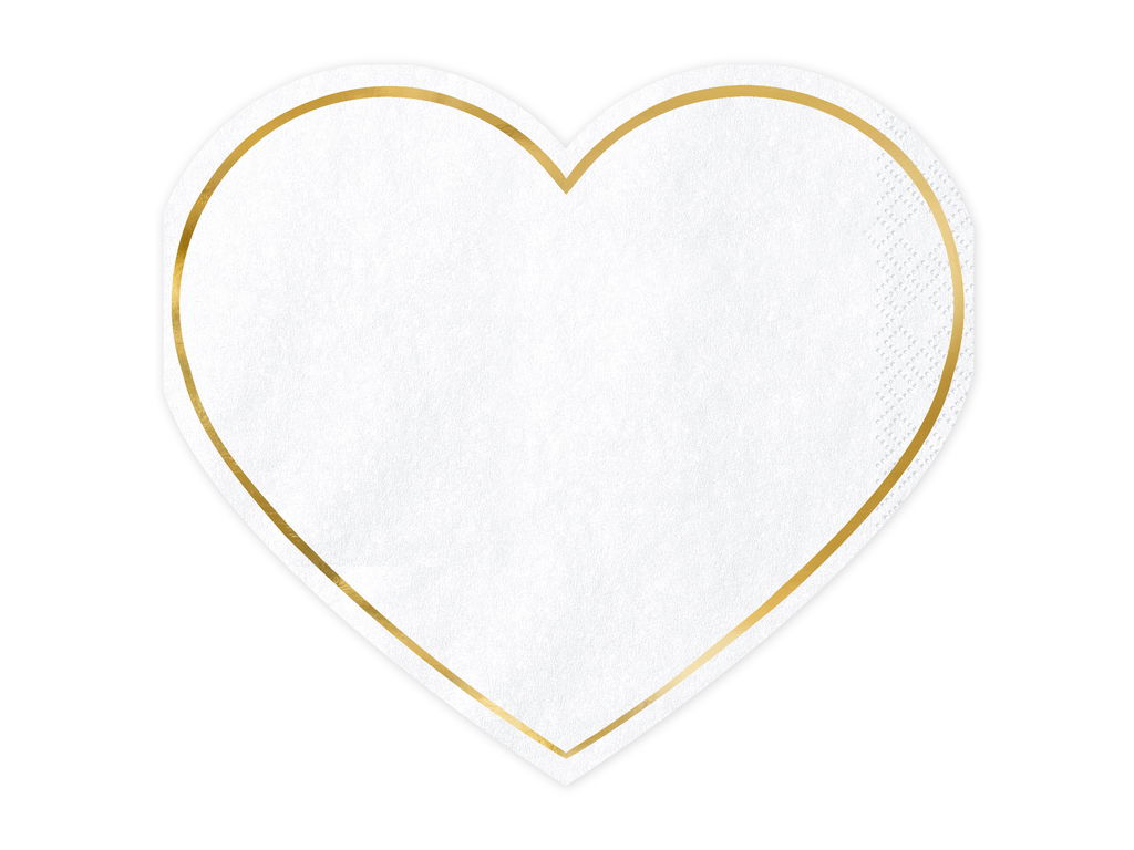Servietter, hjerte, hvide med guldkant, 20-pak